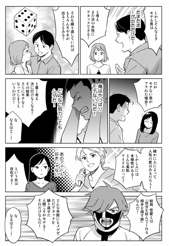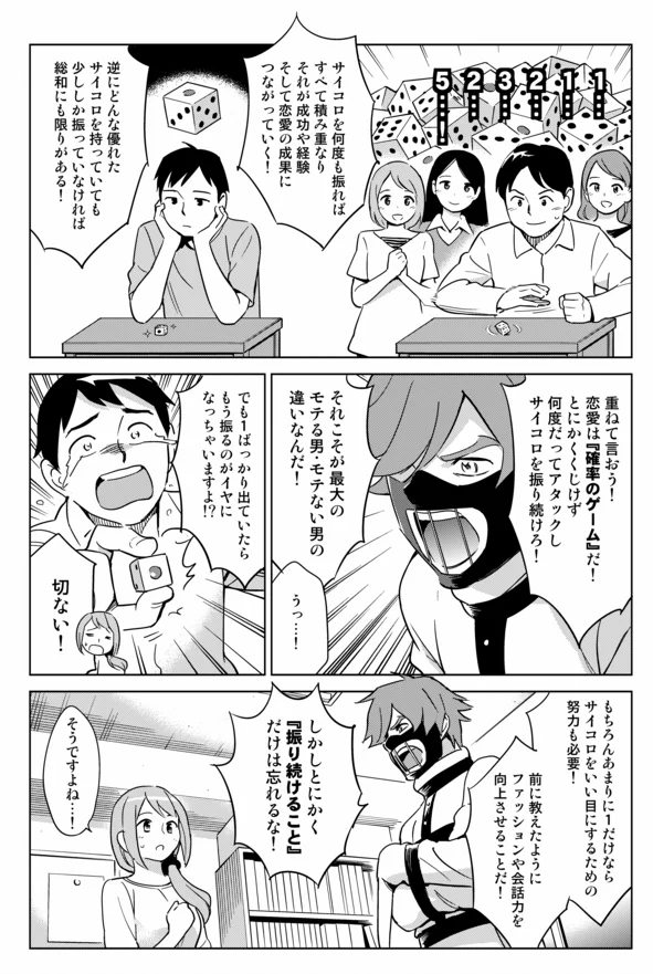 このマンガのテーマは、恋愛を「確率のゲーム」として描きながら、